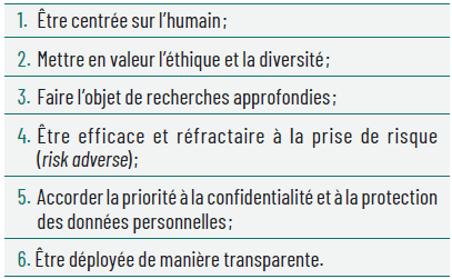 Tableau 1 - Principes centraux à appliquer à l'IA (APA, 2023)