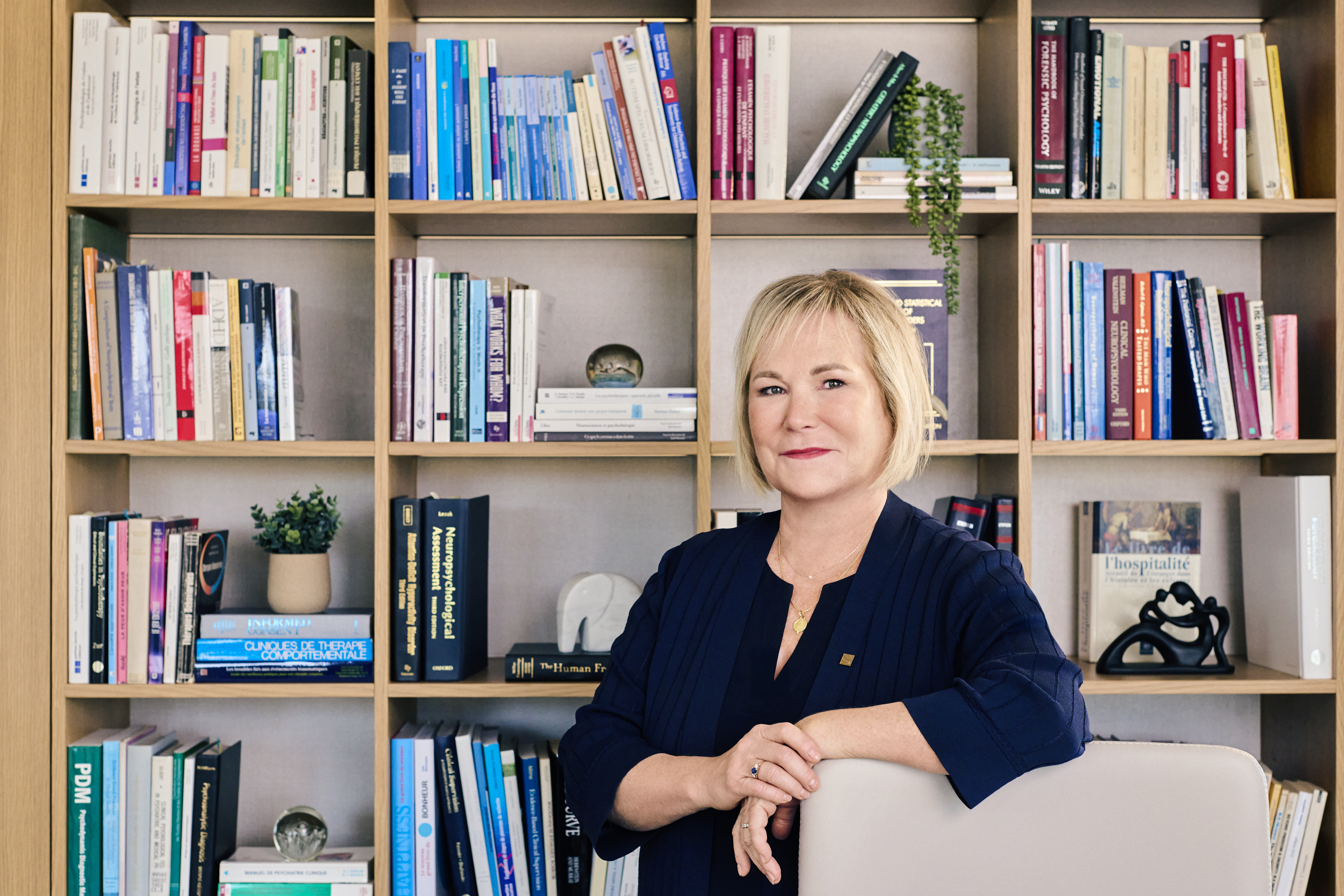 Puis, quand la réforme du ministre Barrette est arrivée, je craignais l’effritement des services psychologiques offerts à la population, et j’essayais de convaincre les psychologues de rester dans le réseau, de ne pas quitter le navire. J’étais cheffe de la discipline de psychologie à l’Institut universitaire en santé mentale de Montréal, et j’adorais mon milieu, mon emploi... Mais je me suis demandé : « Où est-ce que je serais le mieux positionnée pour le bien des patients en santé mentale, pour faire une différence dans la profession? »